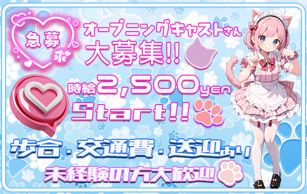 末広町駅 徒歩6分勤務時間 【営業時間】 平日 17:00〜翌5:00 土 13:00〜翌5:00 日 13:00〜22:00 祝 13:00〜翌5:00 ※営業開始30分前から勤務可能です! (オープン準備のため) 週2・一日4時間〜OK! シフト希望制で好きな時間帯に働けます。 平均時給 2,230円! ※アルバイト時給例※ ∇週末ヒロインさん、学生さん 時給 1,800円 × 一日6時間 × 週2~3日 =月収108,000円+交通費 ∇がっつりがんばり屋さん 週4出勤 1日7時間の場合 平均時給 2,230円 × 7時間 × 16日 =月収249,760円+交通費
