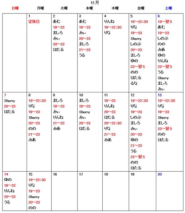 - 〇月13~19時 ○火~金・日13〜22時(週3以上、1日2時間以上) ○土13~23時 1日2時間以上~