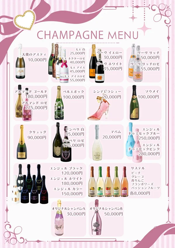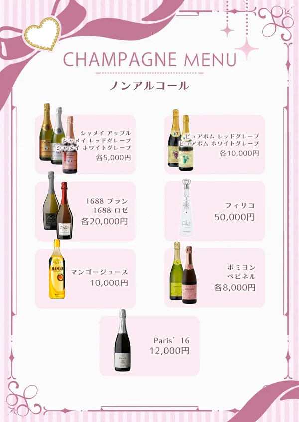 - ソフドリやノンアルシャンパンも多数そろえているので、大丈夫です!ちゃんと稼げます!