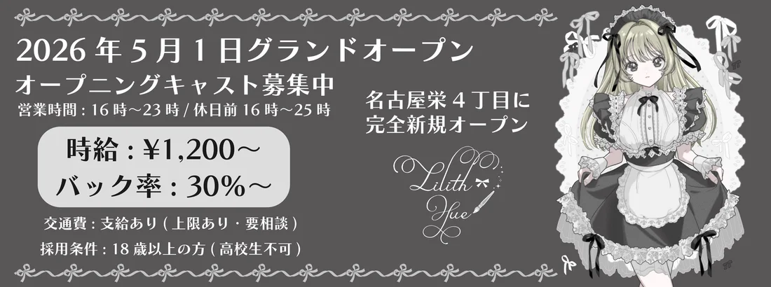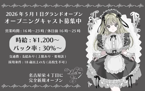 | 勤務時間 | 16:00〜23:00/16:00〜25:00のうち、 1日3時間からOK! |